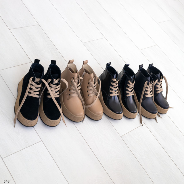 Жіночі демісезонні шкіряні черевики на шнурку та бежевій підошві 36-40